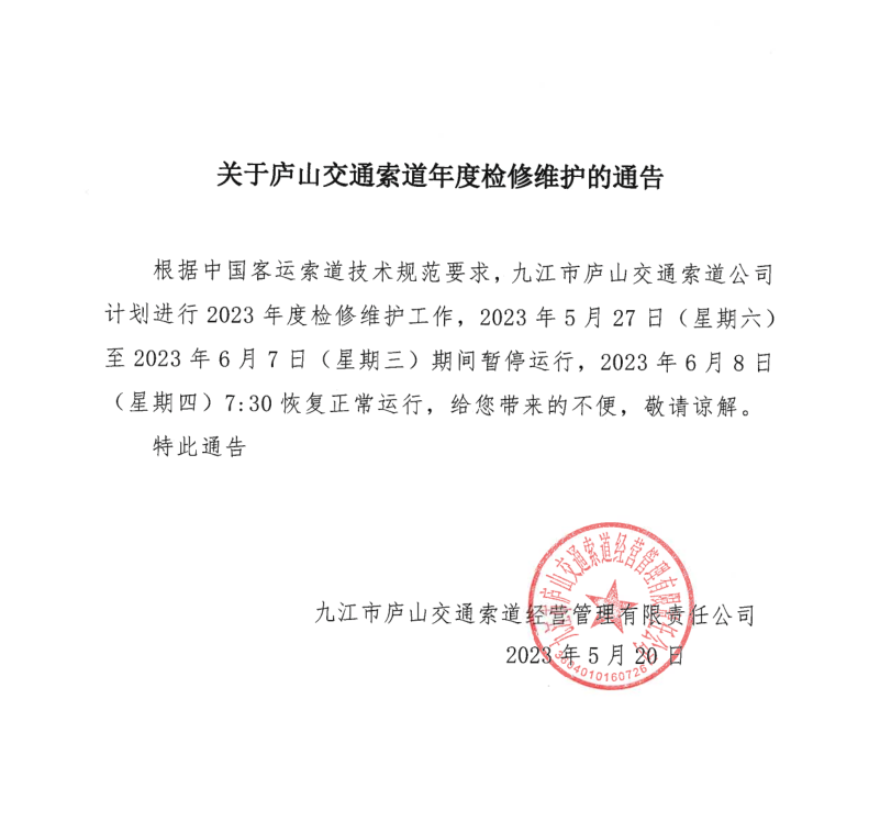 庐山交通索道年度检修要开始了!!!