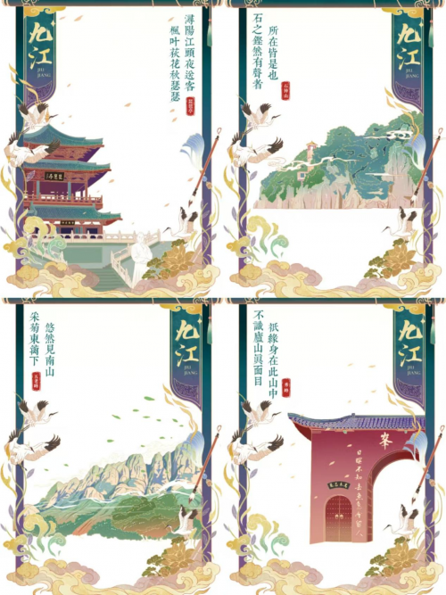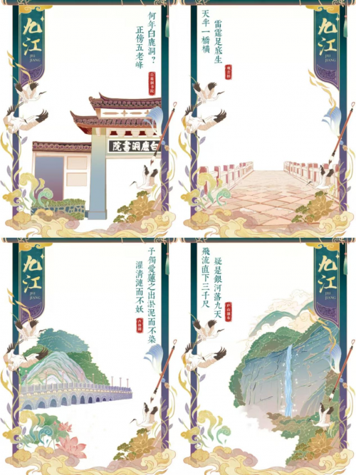 本次九江透卡以庐山、三叠泉、琵琶亭、白鹿洞书院、石钟山等重要景观为原型,独创系列【诗画九江】透卡串联起出行新场景,全新绘制九江打卡地图。每一张透卡对应一个景点和诗词,让出游变得诗情画意。