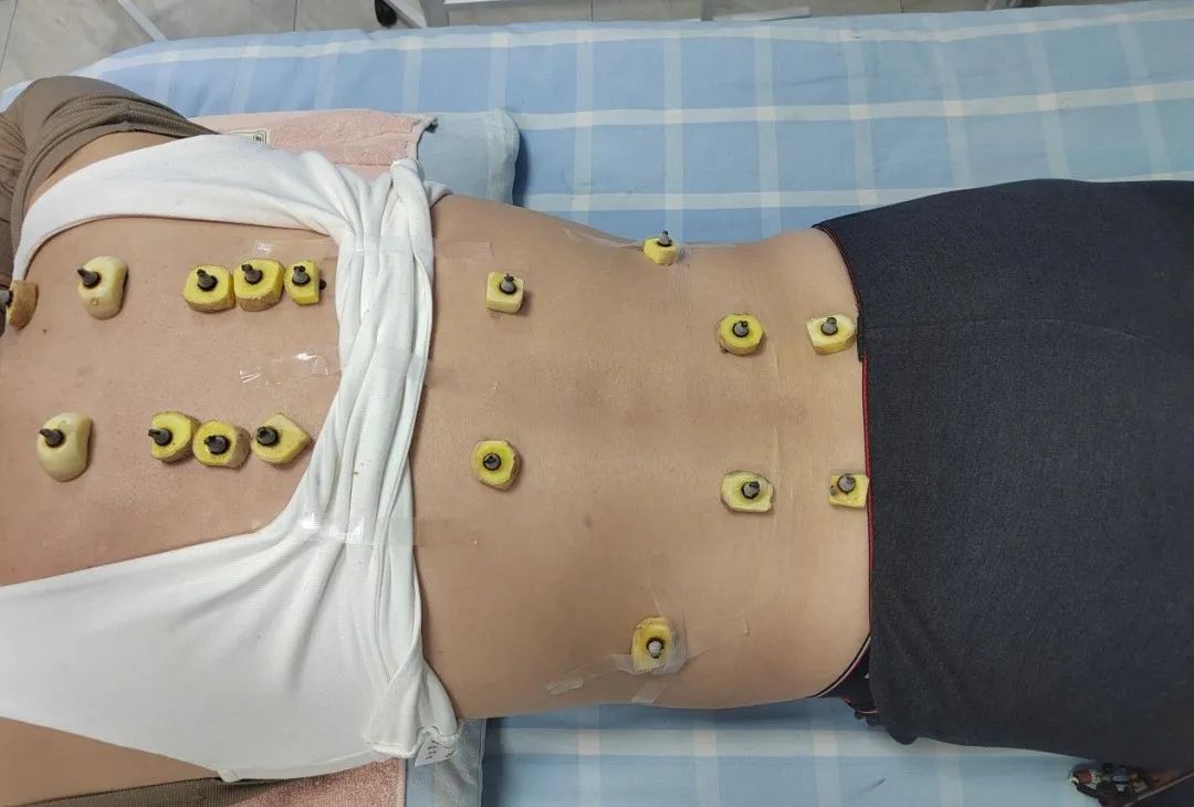 据经管医生吴优介绍,患者陈女士已有10余年浅睡眠和失眠的症状,经常需要靠精神类、安眠类药物的辅助才能安睡。失眠科负责人、副主任中医师黄鹤接诊,“望闻问切”四诊参合后,决定采用聚能艾塔立体隔物灸为其进行个性化的治疗。聚能艾塔立体隔物灸是失眠科团队以《易经》《道德经》及《黄帝内经》为理论基础,根据患者病因和身体状况在其身体经络穴位上整体“排兵布阵”点穴,进行综合治疗,施“兵”以“聚能艾塔”、姜片、蒜片在穴位上做的立体隔物灸。