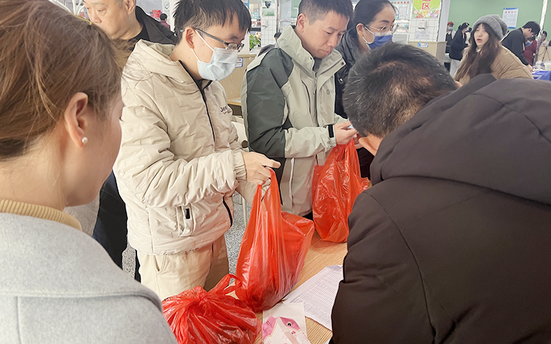 春节将至,为进一步带动帮扶村都昌县大港镇繁荣村经济发展,解决群众的实际困难,九江学院附属医院驻村工作队联合工会等部门,组织职工在职工食堂开展了“2025迎新春,乡村振兴消费帮扶”行动。2025年1月20日至22日,全院干部职工根据需要,自愿选购来自繁荣村脱贫农户的绿色农产品。