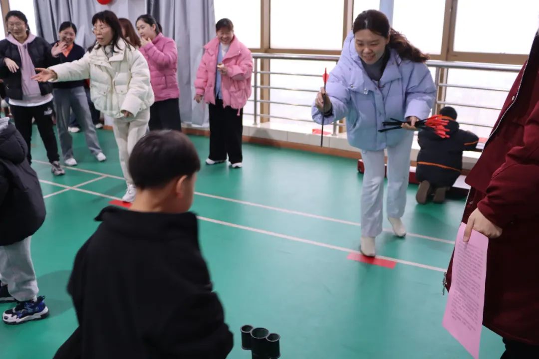 趣味游园活动内容丰富、健康向上、形式多样,包括“包五行饺子”“巨人的脚步”“风火轮”“古风投壶”“谜语猜猜乐”“乒乓球投掷”等项目。活动现场,每个趣味项目前都排着长龙,充满欢声笑语,热闹非凡,大家玩游戏、秀本领、拼技巧,不亦乐乎,现场处处弥漫着欢乐祥和的新年气息。