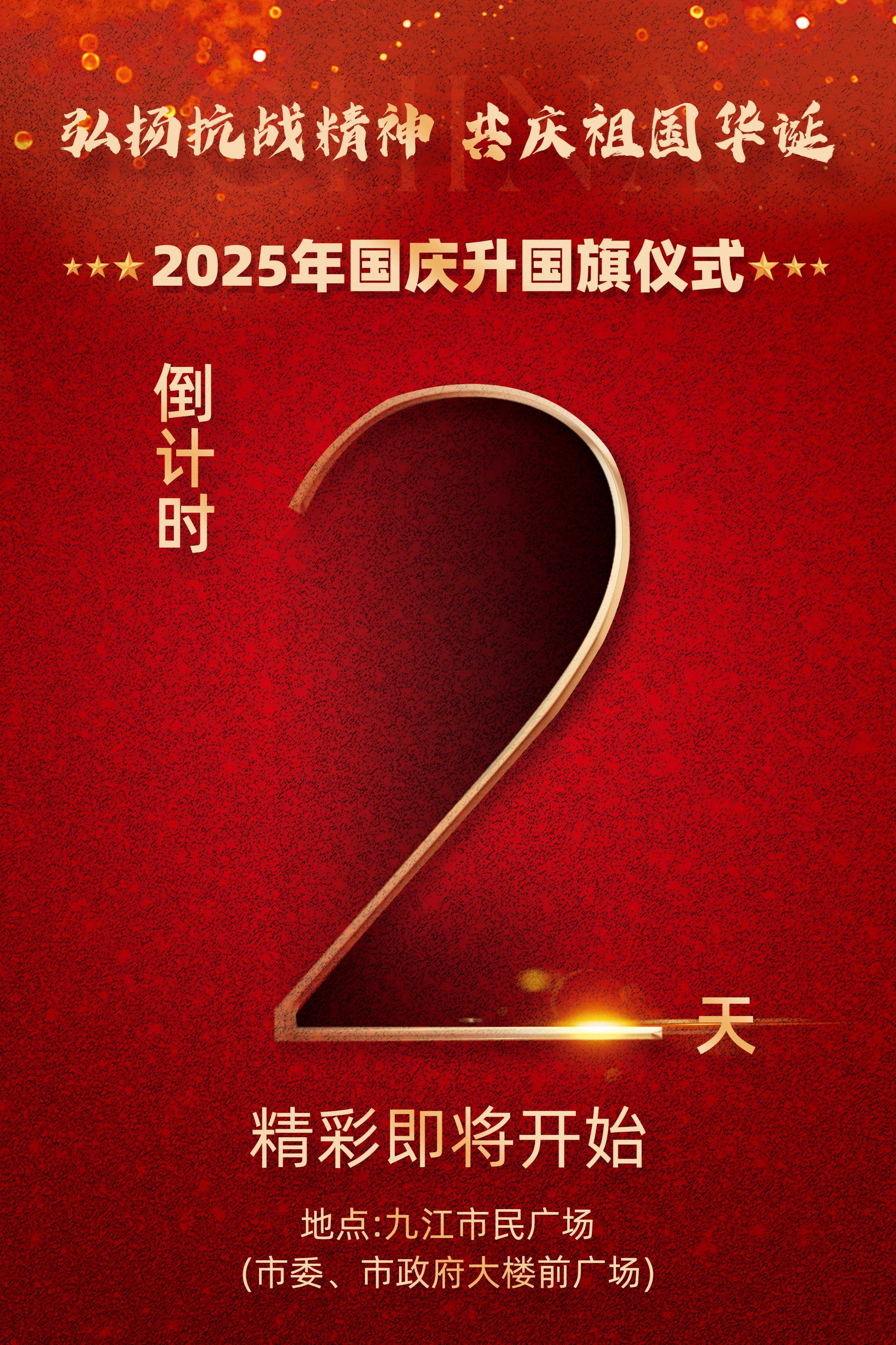 为庆祝国庆佳节,展示新时代九江风采,2025年10月1日8:00,九江将在九江市民广场举行“弘扬抗战精神 共庆祖国华诞”国庆升旗仪式。