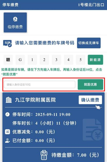 就诊患者停车费用减免