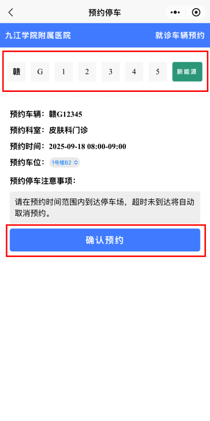 • 在停车预约页面,输入您的车牌号码。