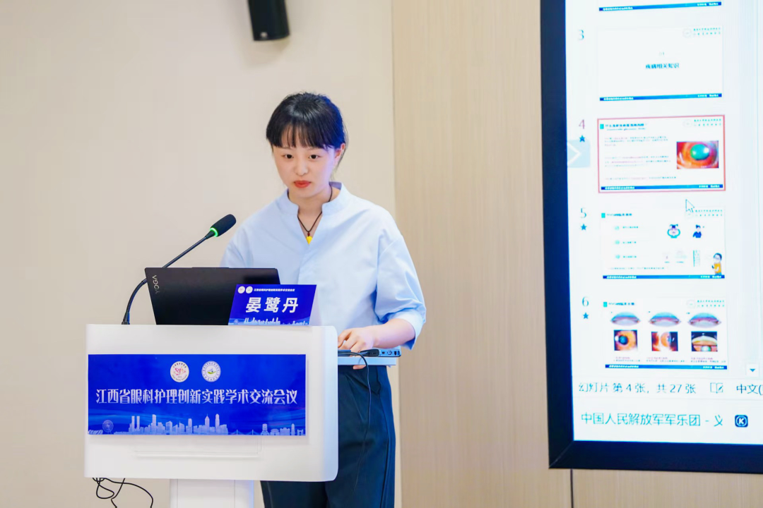 近日,由江西省眼科护理专业委员会、南昌大学附属眼科医院主办的江西省眼科护理创新实践学术交流会议在南昌顺利举办.九江市中医医院江西省中医护理骨干、眼科专科护士晏鹭丹在会上作作案例分享。