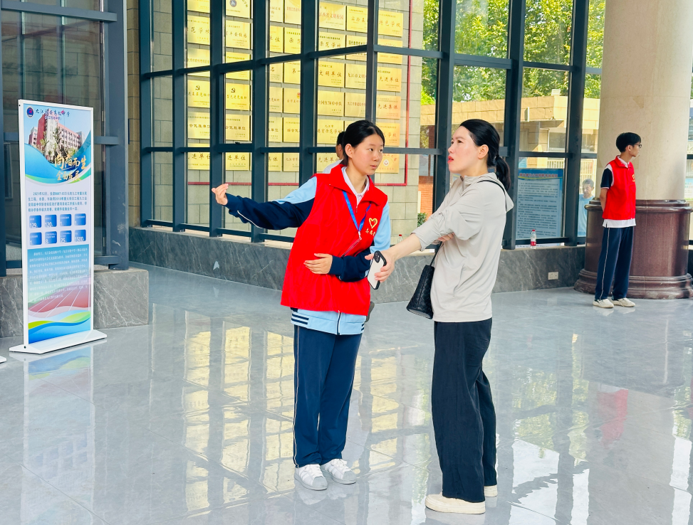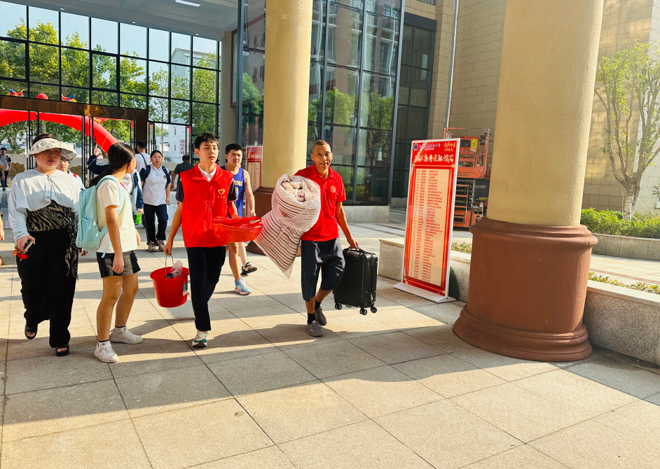 8月30日,九江金安高级中学(九江石化中学)迎来秋季开学报到日。尽管暑气未消,校园内却因一支穿梭忙碌的“红色身影”倍显温馨——由校团委组织的10余名师生志愿者早早到岗,用热情与细致为新生及家长提供全方位服务,成为这个开学季动人的风景线。