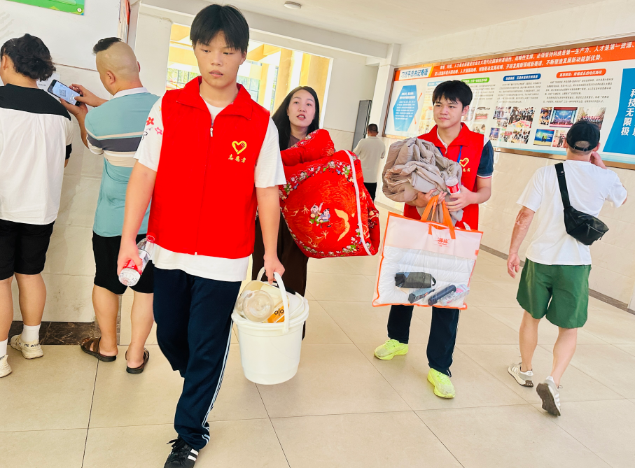 当天上午7点半,身穿印有“金安志愿者”字样红色马甲的队伍已分布在校园各处。校门口,志愿者们主动接过新生及家长手中沉甸甸的行李,协助搬至宿舍;教学楼前,他们手持班级分布图,耐心解答路线疑问;宿舍区,高年级学长学姐化身“生活导师”,手把手教新生整理内务。