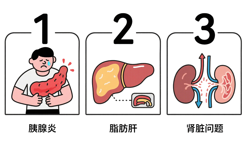 严重的高甘油三酯血症可能诱发急性胰腺炎,疼痛剧烈,甚至可能致命。