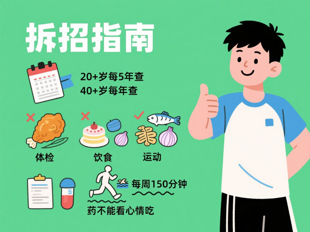 •40+岁/胖/三高:每年查!尤其盯紧“坏胆固醇”→LDL-C。