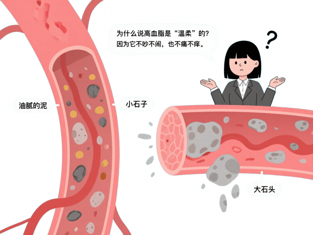 血管不是玻璃管,堵了你也看不见。超过80%的人早期毫无感觉。什么头晕手麻?别自作多情,大概率不是你血脂高的信号!