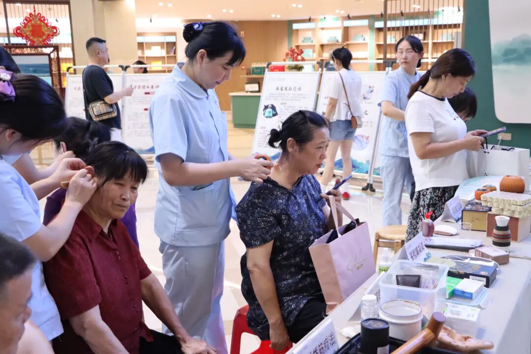 在茶艺展示区,茶艺师娴熟表演传统茶道,讲解不同茶性的养生功效;万里茶道展览馆则展现九江茶文化的历史渊源;在望闻问切区,资深中医师为市民免费提供体质辨识和健康咨询,量身定制“未病先防”方案;中医适宜技术体验区最是热闹非凡,拔罐、刮痧、耳穴压豆等传统技法吸引众多市民亲身体验。
