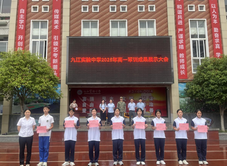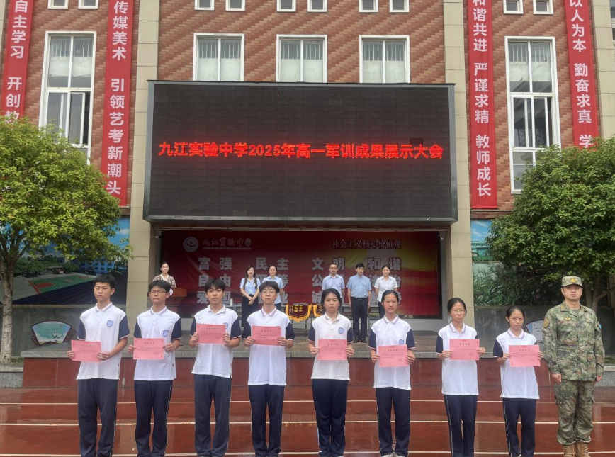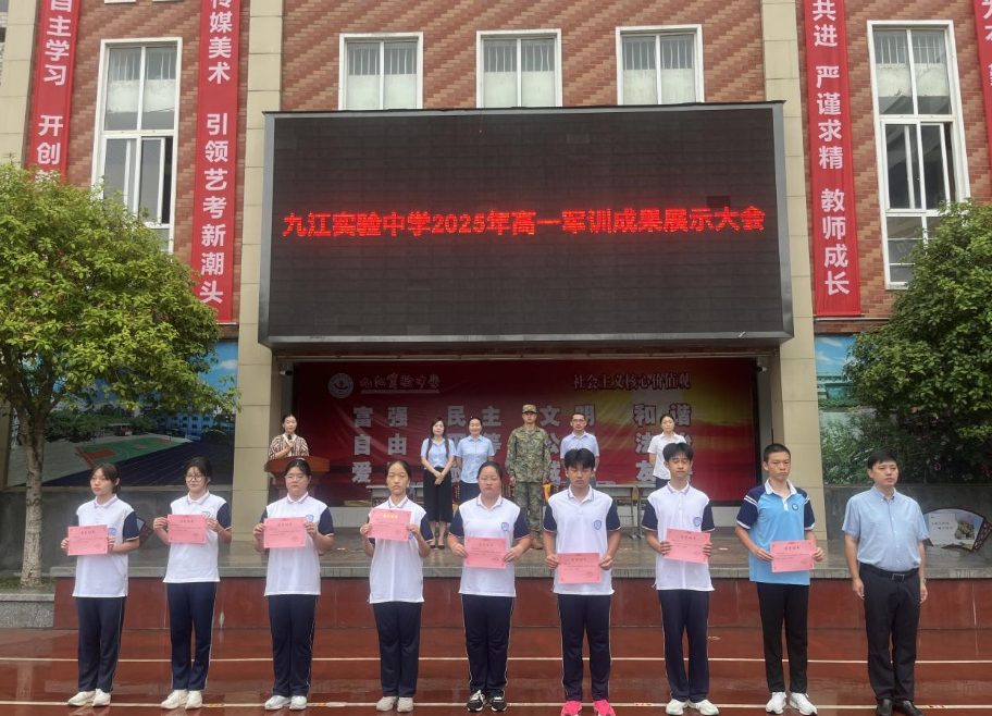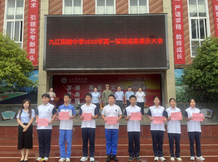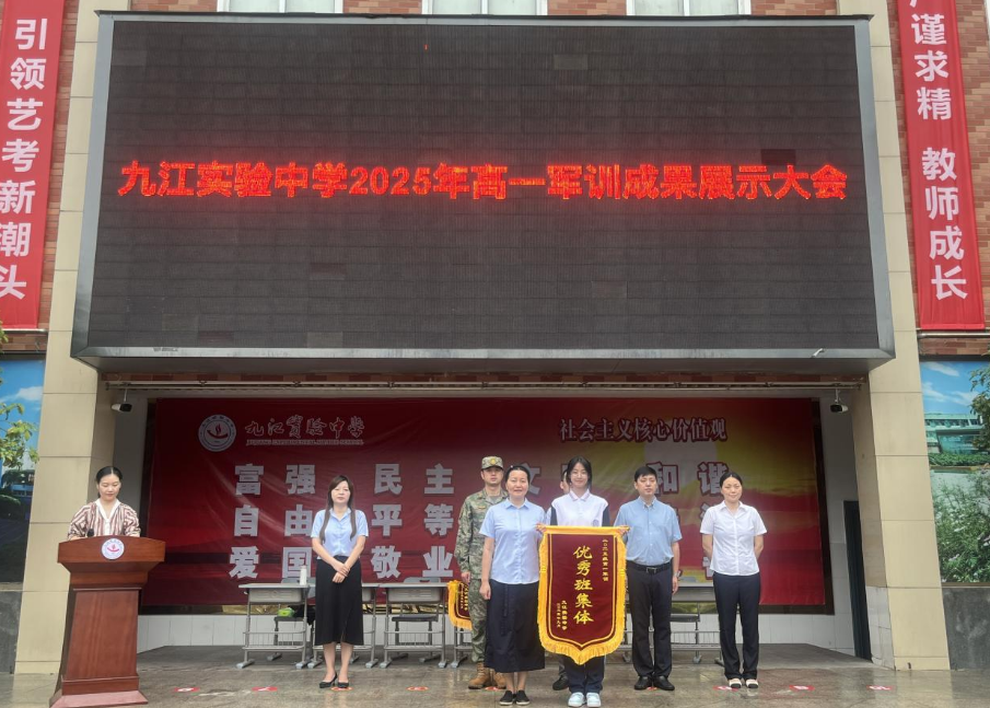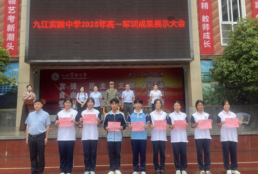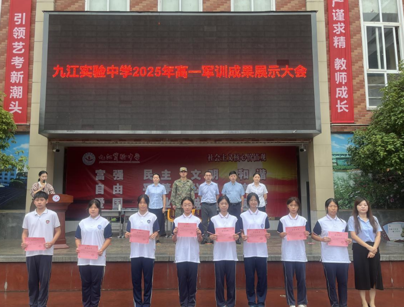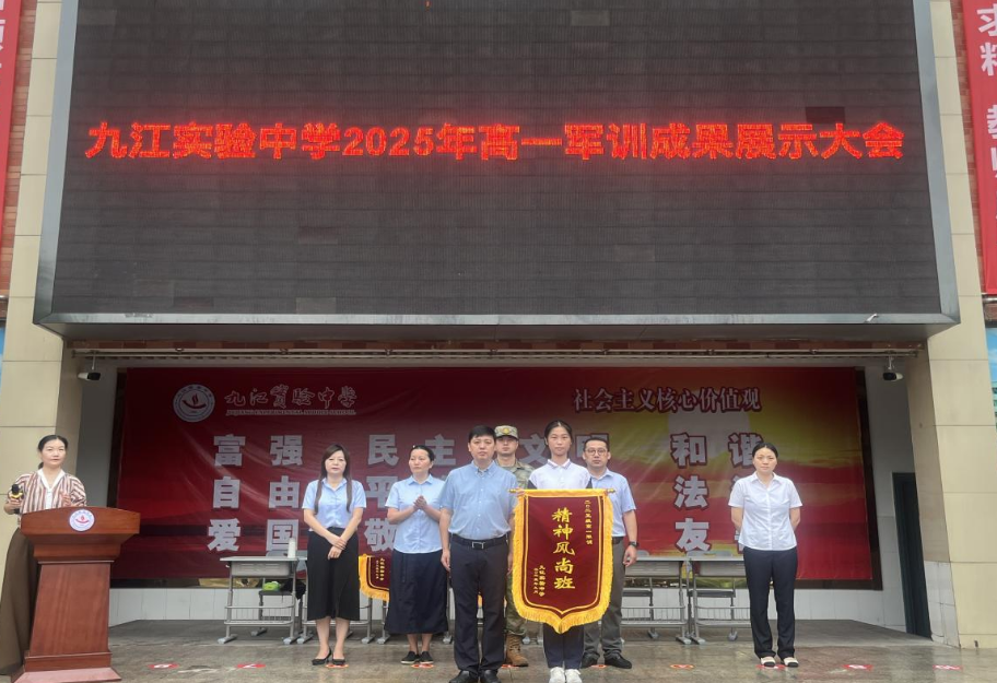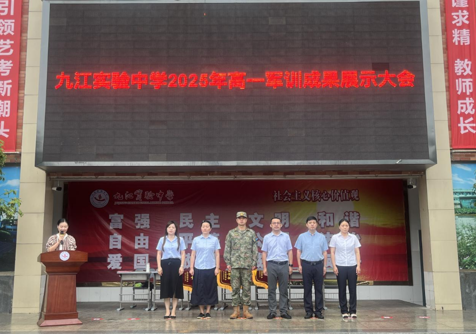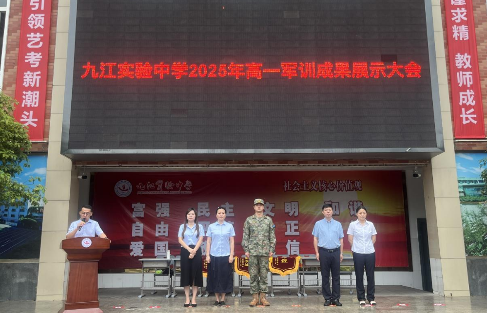 9月13日上午9时,九江实验中学高一军训成果展示大会在学校大操场举行。大会由学校体艺中心主任喻岚主持,校领导班子、高一全体师生及教官参加活动。