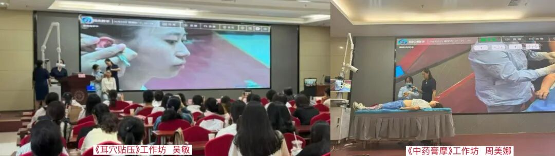 工作坊环节中,耳穴贴压和中药膏摩实操项目成为全场关注的核心,现场交流研讨氛围浓厚,学员们亲身实践,深化了对中医护理技艺的感知与认同。学员一致表示,此次培训不仅是对中医护理知识体系的一次系统性深化,更是一次职业信念的强化与赋能,也更坚定了将所学转化为提升服务质量、改善患者就医体验的实际行动。