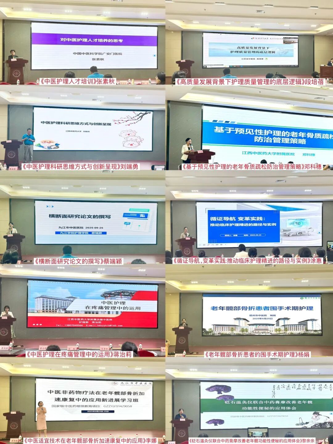 本次论坛汇聚多位学者专家,包括中华护理学会张素秋教授、江苏省中医院护理部主任段培蓓、江西省中医药大学护理学院院长刘端勇、江西省中医院大学附属医院护理部主任邓科穗、南昌大学第二附属医院护理部主任涂惠、九江学院护理学院院长蔡端颖、南昌市洪都中医院护理部副主任蒋治莉、赣州市中医院护理部主任杨娟等省内外各医院、高等院校知名专家授课,围绕中医护理人才培养、科研创新与论文撰写、老年骨质疏松防治、中医护理疼痛管理、中医技术在老年髋的运用等方面展开深度研讨、授课。